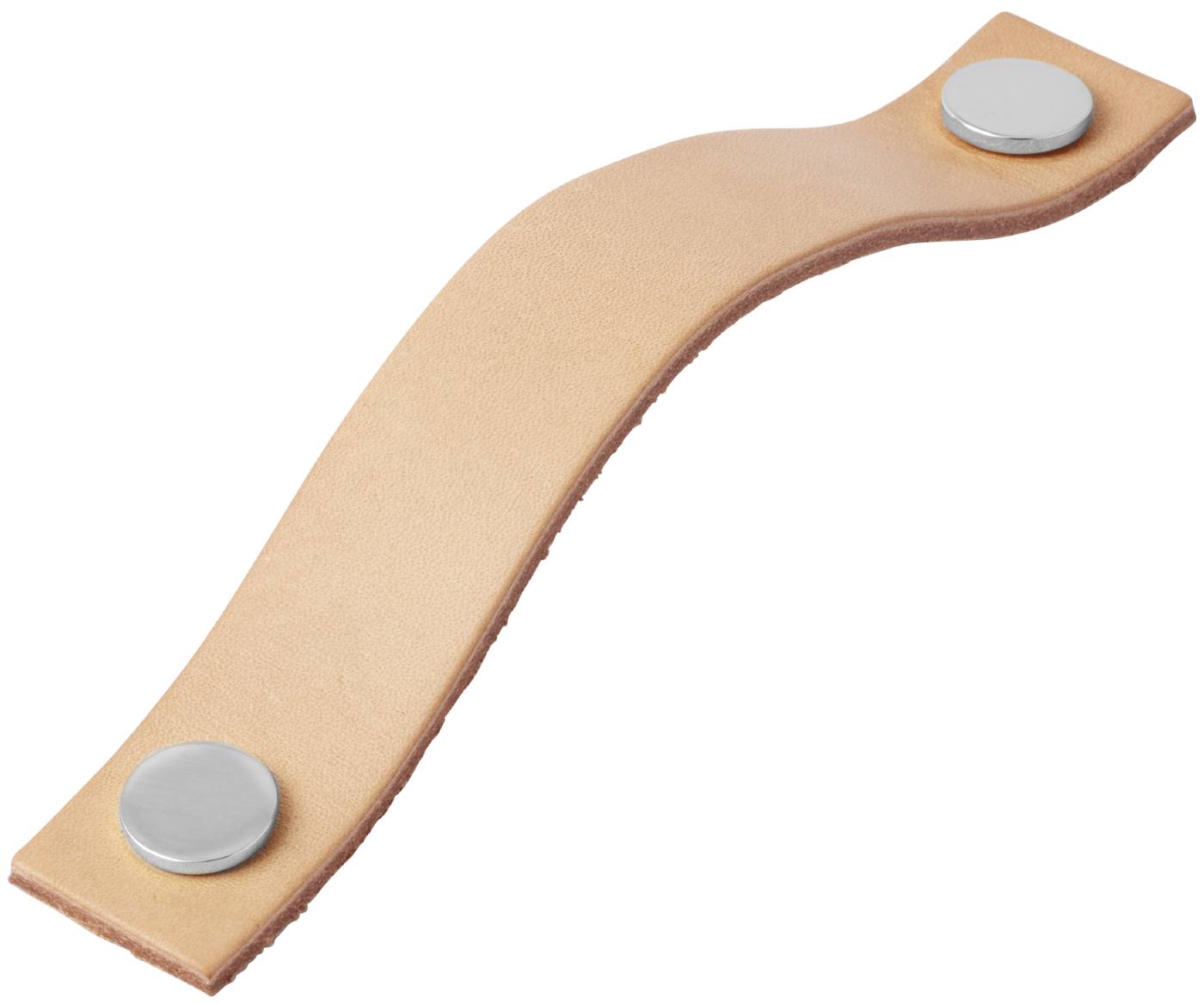 Lærhåndtak til skuffer og skapdører. Leveres i ulike farger. Eksklusiv lærhåndtak med lær fra svenske Tärnsjö Garveri Metalllfester i både messing og krom følger med