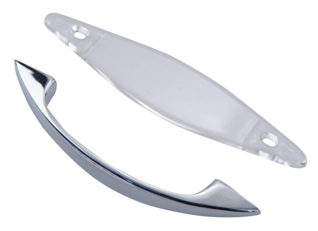 Håndtak egnet for garderobedører etc. Inklusive underlagsbrikke i plast og skrue.