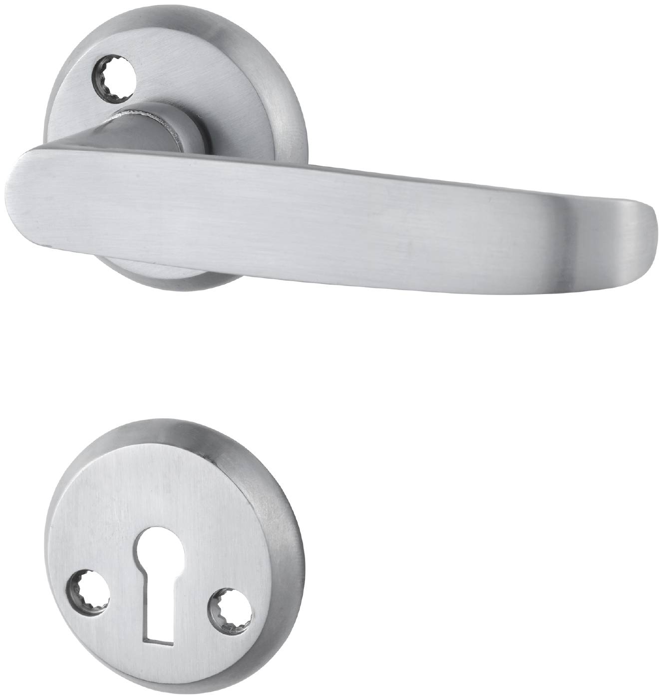 Dørhåndtak for innerdører. Leveres inklusive nøkkelskilt, vriderpinne og skrue M4.