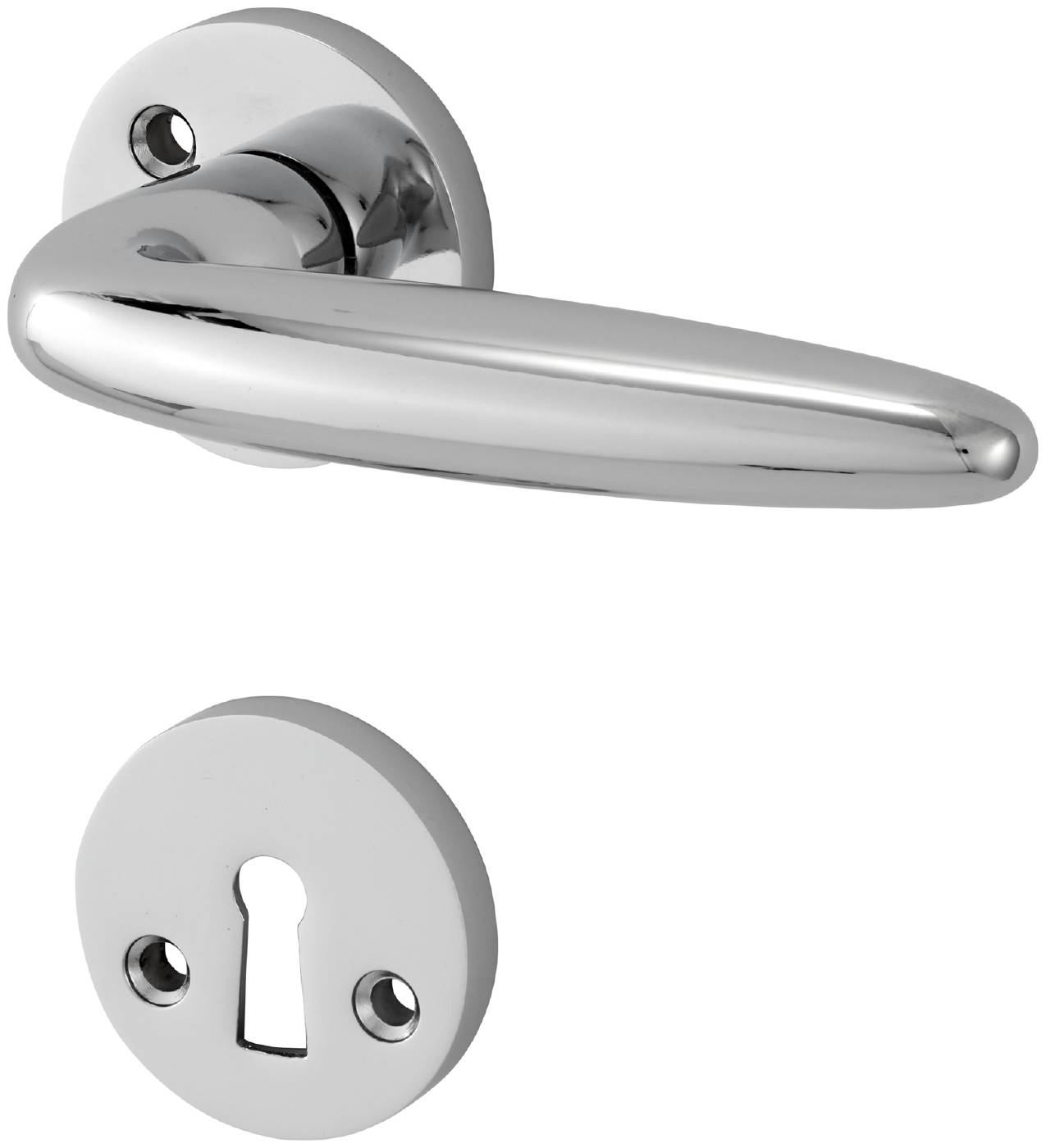 Dørhåndtak for innerdør. Økonomipakke. Leveres inklusive nøkkelskilt, vriderpinne og skrue M4 samt treskrue.