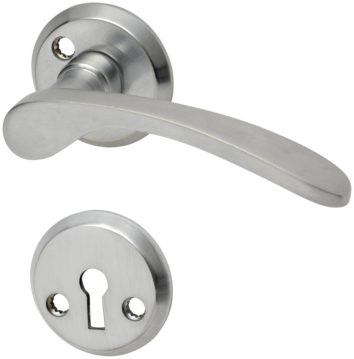 Dørhåndtak for innerdør. Leveres inklusive nøkkelskilt, vriderpinne og skrue M4.