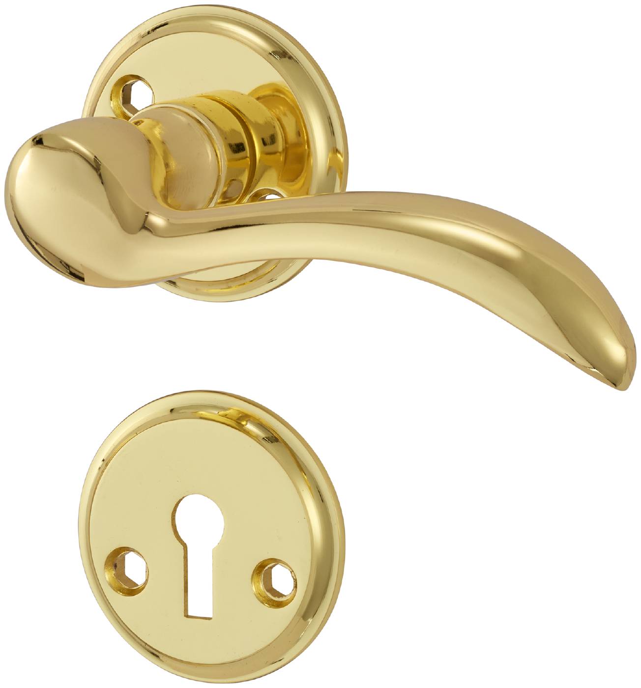 Dørhåndtak for innerdør. Leveres inklusive nøkkelskilt, vriderpinne, nippel og skrue M4.
