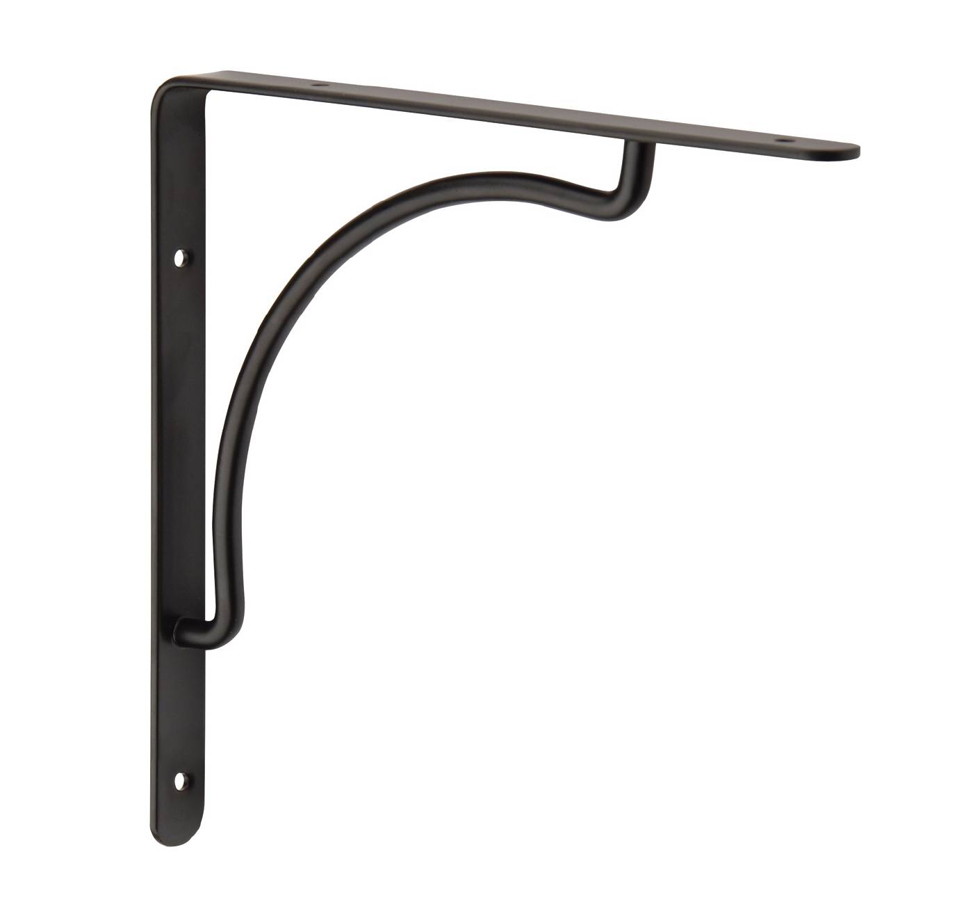Hyllekonsoll av lakkert stål. 4 svarte skruer samt plugg inngår.