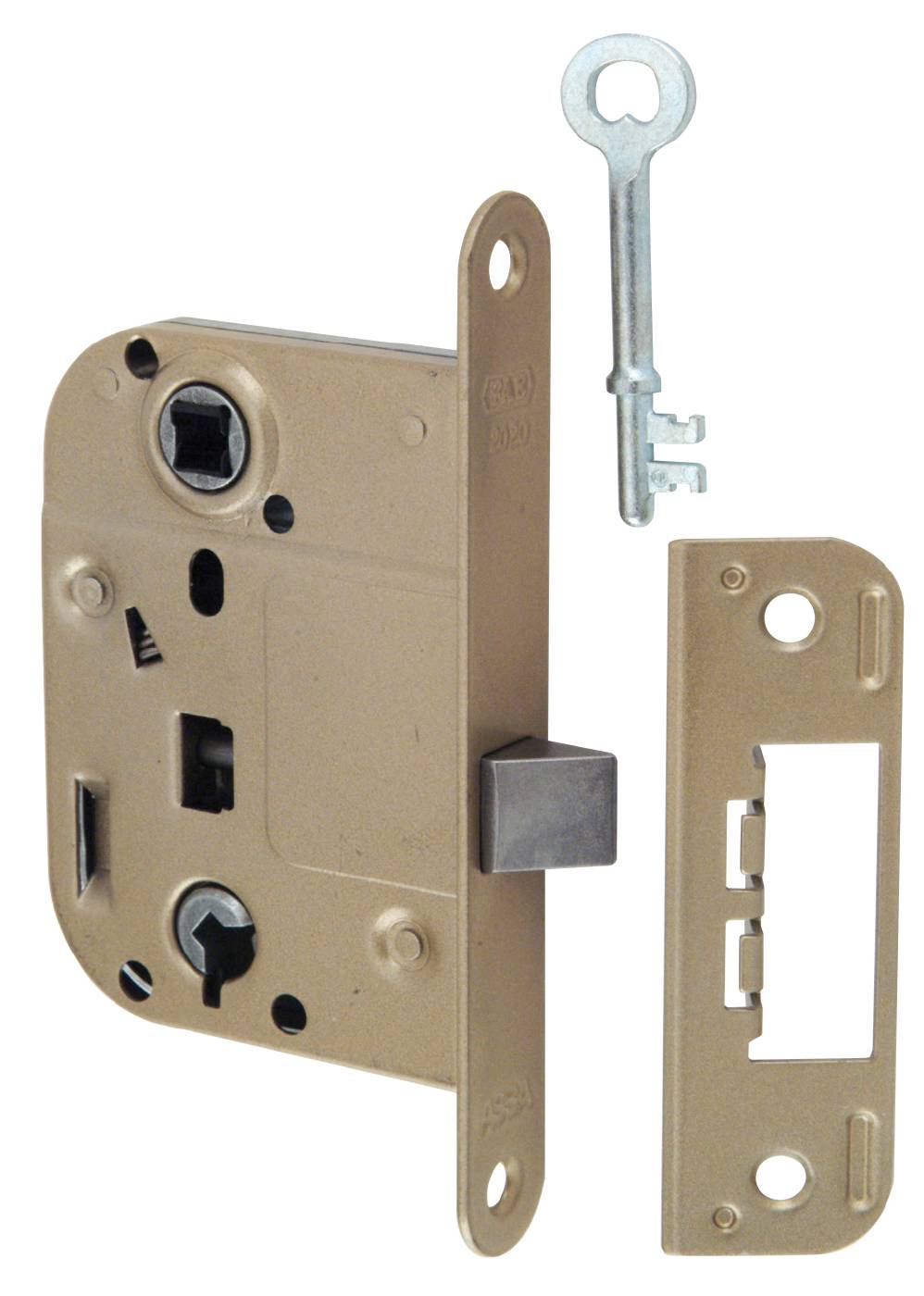 Låskasse for lette innerdører med trykkfalle. Låses med nøkkel eller wc-vrider. 90° nøkkelvridning i reilens bevegelsesretning. Uttrekkbar og vendbar fallstempel for endring høyre/venstre. Leveres med nøkkel og sluttblekk. Dordybde 45mm. Mål stolpe 20x150mm.