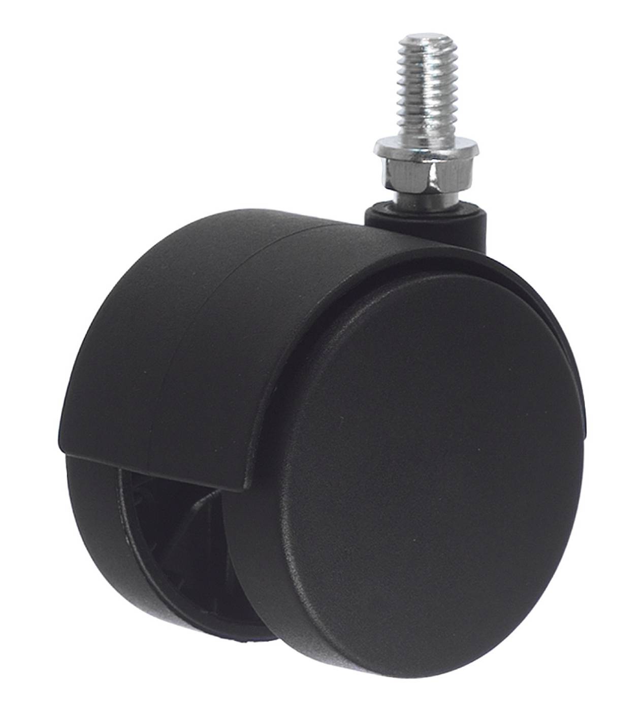 Dobbelhjul i svart, med tapp M8. Ikke-remsede hjul.