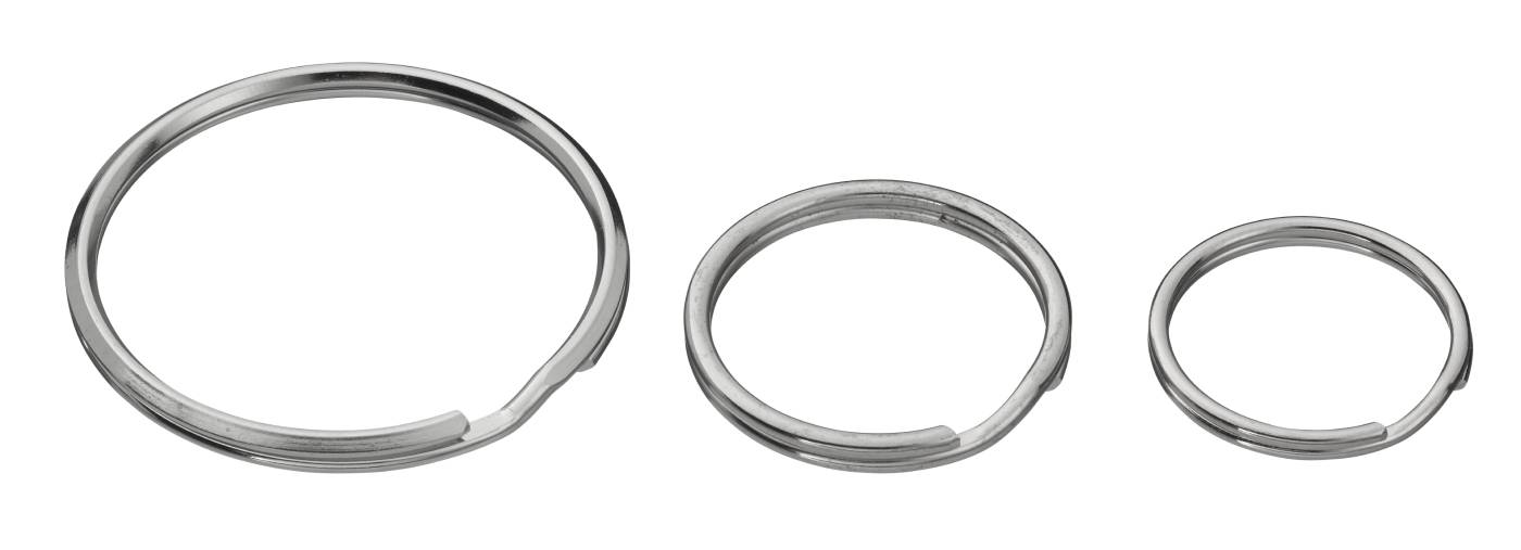 Nøkkelringer (9 stk) i ulike størrelser. 3 stk 25 mm, 3 stk 30 mm og 3 stk 42 mm.