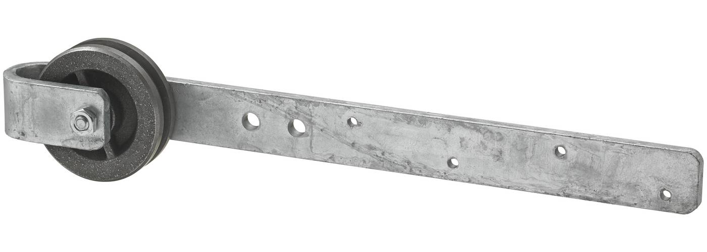Støpejernsruller med stålrullelager. Montert i et kraftigt varmforzinket stativ.
