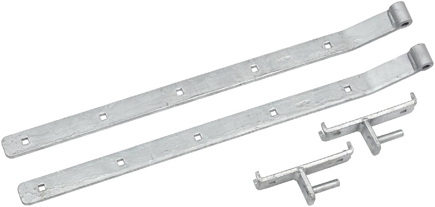 Hakehengsel av stål. Komplett med hake. Hulldimensjon på de firkantede hullene er 11x11 mm og ±0.2. De runde hullene har hulldiameter 10 mm ±0.2. Anbefalt lengde på hakehengsler er at bladet bør dekke minst 60 % av bredden på dør/grind/luke.