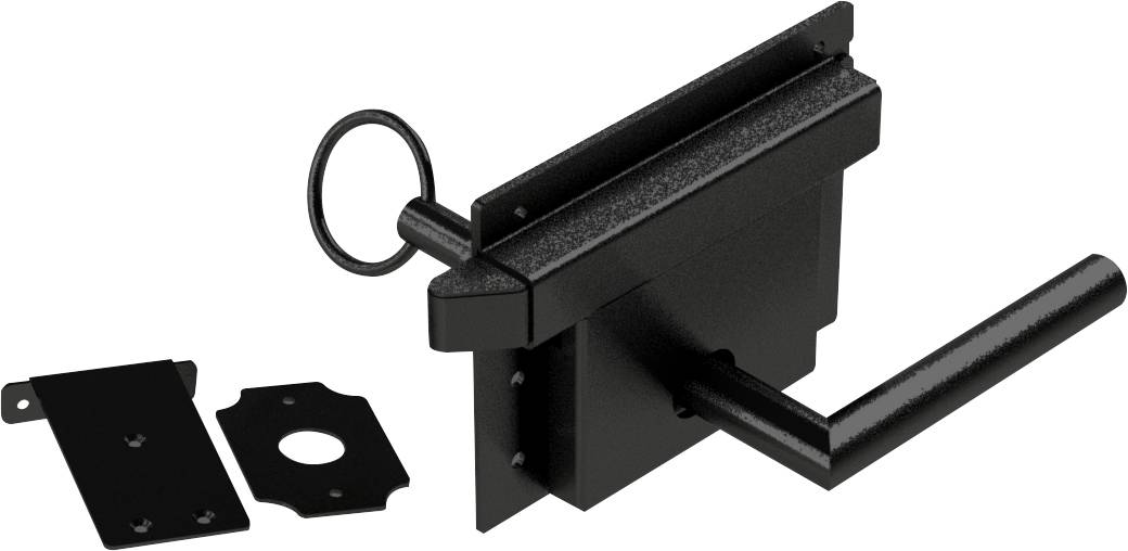 Utendørslås med utenpåliggende låskasse for enkel montering utenpå døren. Passer til redskapsboder, låvedører, porter, uthus m.m. Komplett med sluttblekk, nøkkelskilt, 1 nøkkel og skrue.