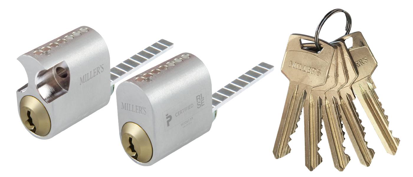 Oval dubbel låscylinder i mässing. Standard ovalt utförande med lång medbringare utsida och rokoko urförande med lång medbringare insida. Levereras med 5st nycklar. 7-stift. För genomgående fastsättning. Uppfyller kraven för klass 3.