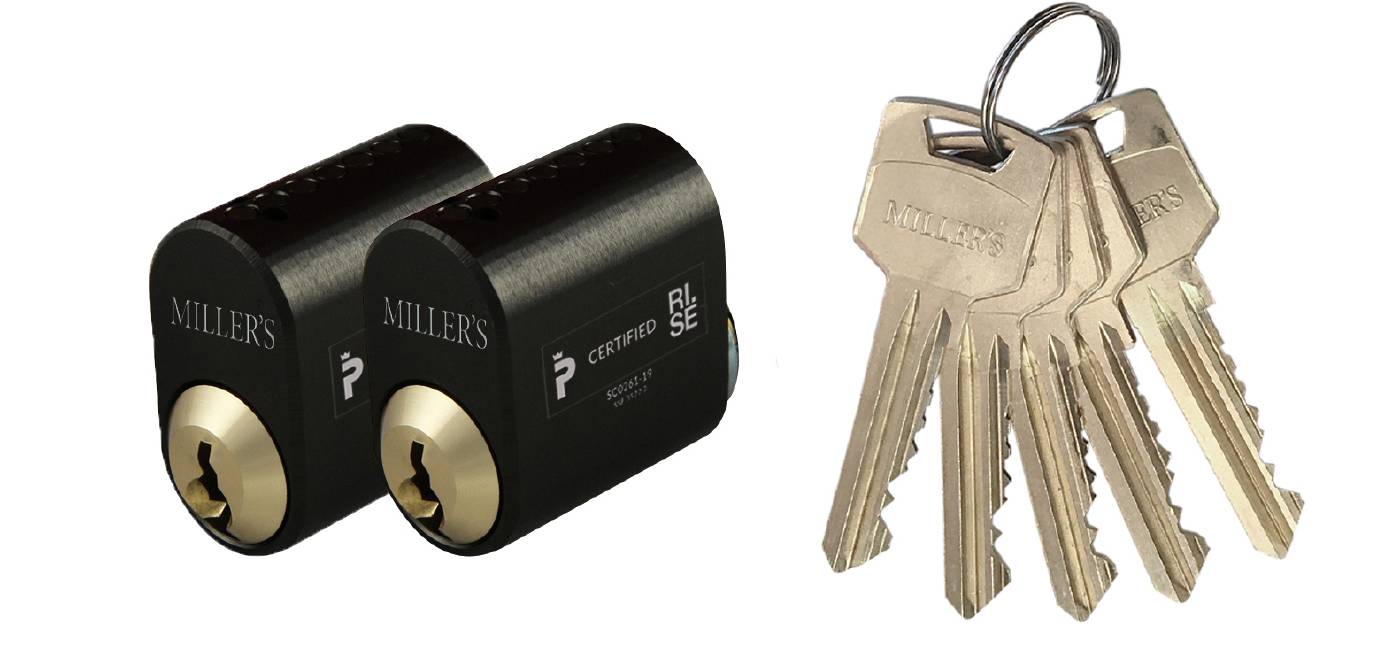 Oval låscylinder i mässing i satser om 2st cylindrar med lika låsning. Levereras med 5st nycklar. 7-stift. För genomgående fastsättning. Uppfyller kraven för klass 3.