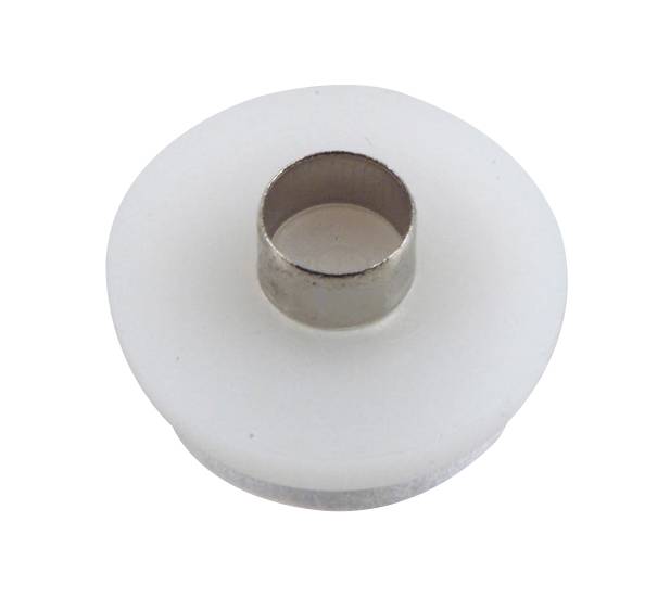 Gråvit plast med ingjuten filt och rörhylsa i metall.