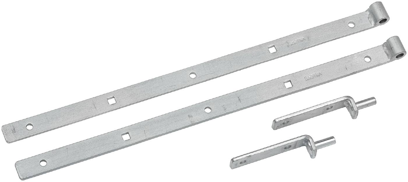 Hakgångjärn av stål. Komplett med hake. Håldimension på de fyrkantiga hålen är 11x11 MM och +/- 0,2. De runda hålen har håldiameter 10 MM +/- 0,2. Rekommenderad längd på hakgångjärn är att bladet bör täcka minst 60% av bredden på dörr, grind , lucka.