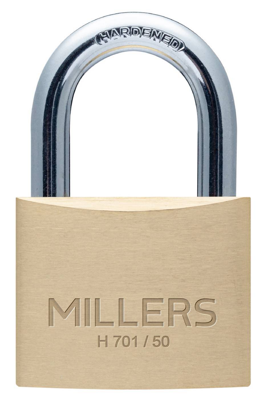 Hänglås av kraftigare modell i massiv mässing med cylinder i mässing. Härdad dubbelreglad bygel i stål. Användningsområde: Klädskåp, förråd, verktygslådor m.m där inga specifika krav på låsning krävs. De artiklar som har 2-pack eller 3-pack har likalåsning.