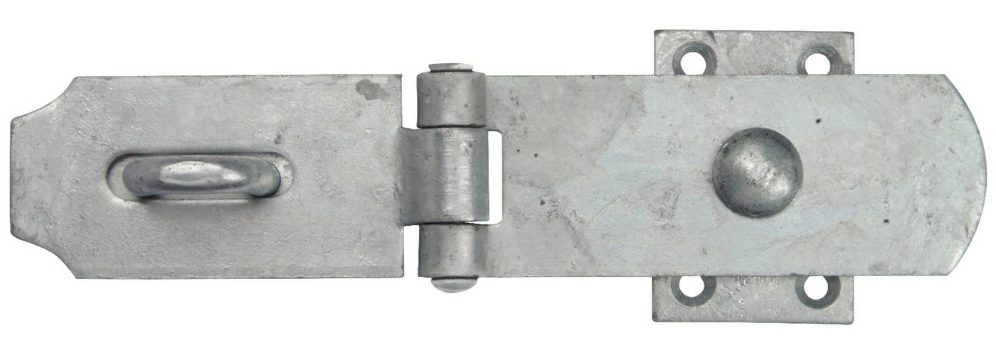 Hasp tillverkad i 4 mm stål. Låsbygel Ø 10 mm. Monteras med dold fastsättning på roterbar platta.