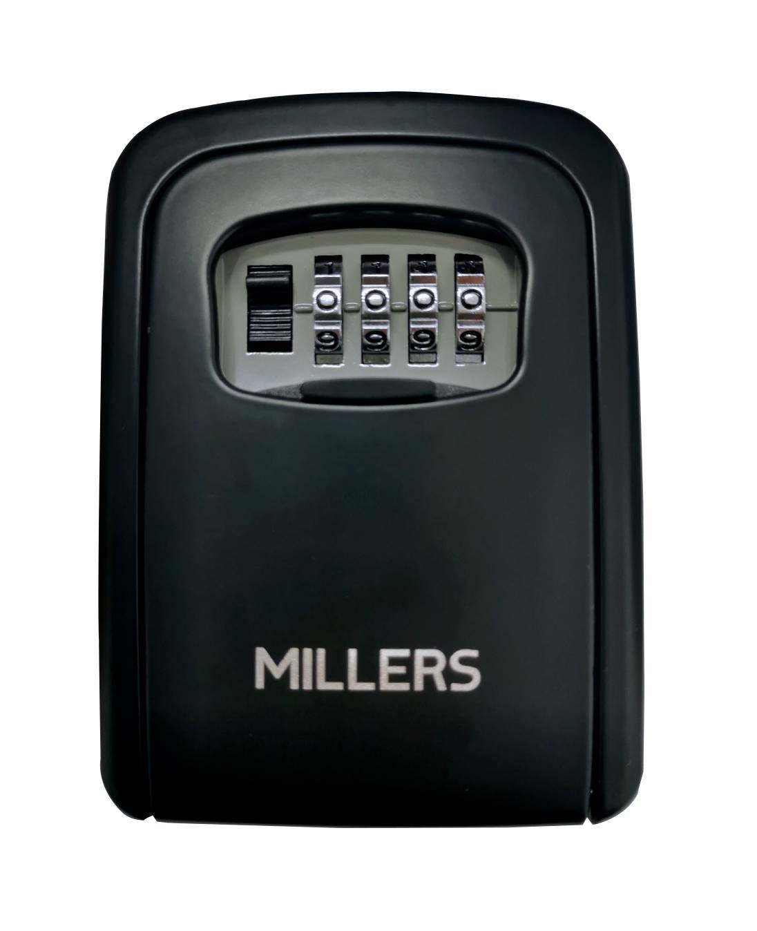 Praktisk nyckelförvaring med kombinationlås och väderskyddande lucka. Användningsområde: Förvaring av nycklar i de fall flera behöver tillgång till nycklar, tex bommar m.m. För montering på vägg.