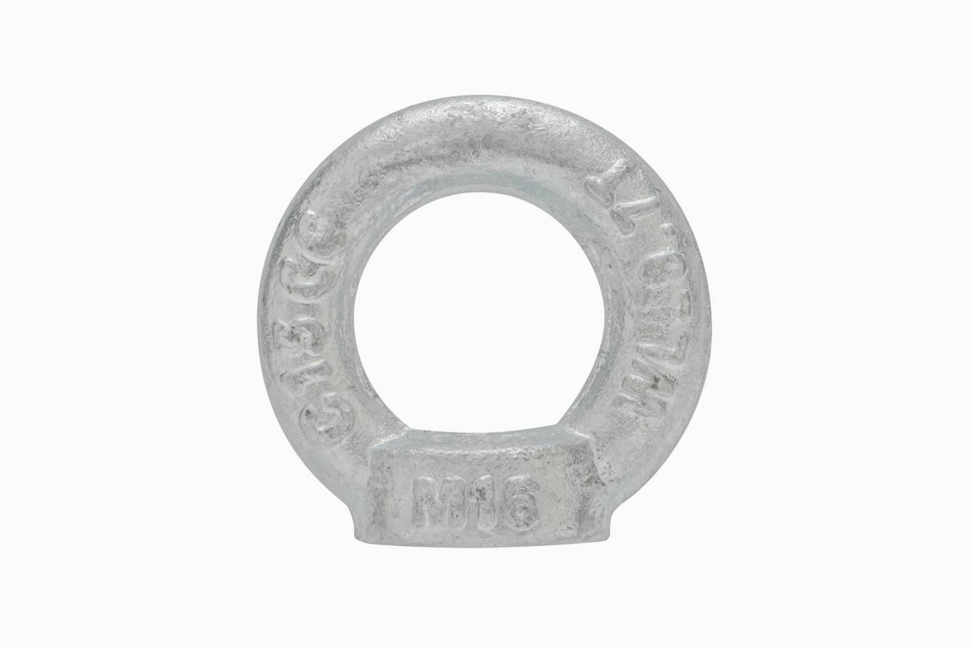 Ringmutter. OBS! Ej avsedd för lyftändamål. Tillverkad enligt DIN STD 582.