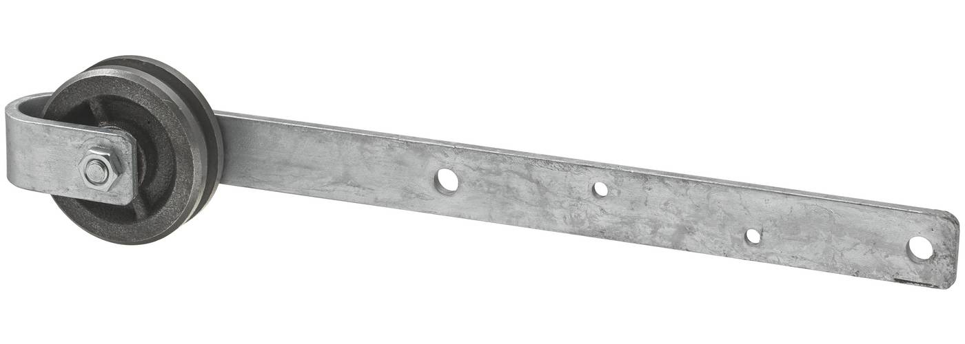 Gjutjärnsrullar med stålrullager. Monterade i ett kraftigt varmförzinkat stativ.