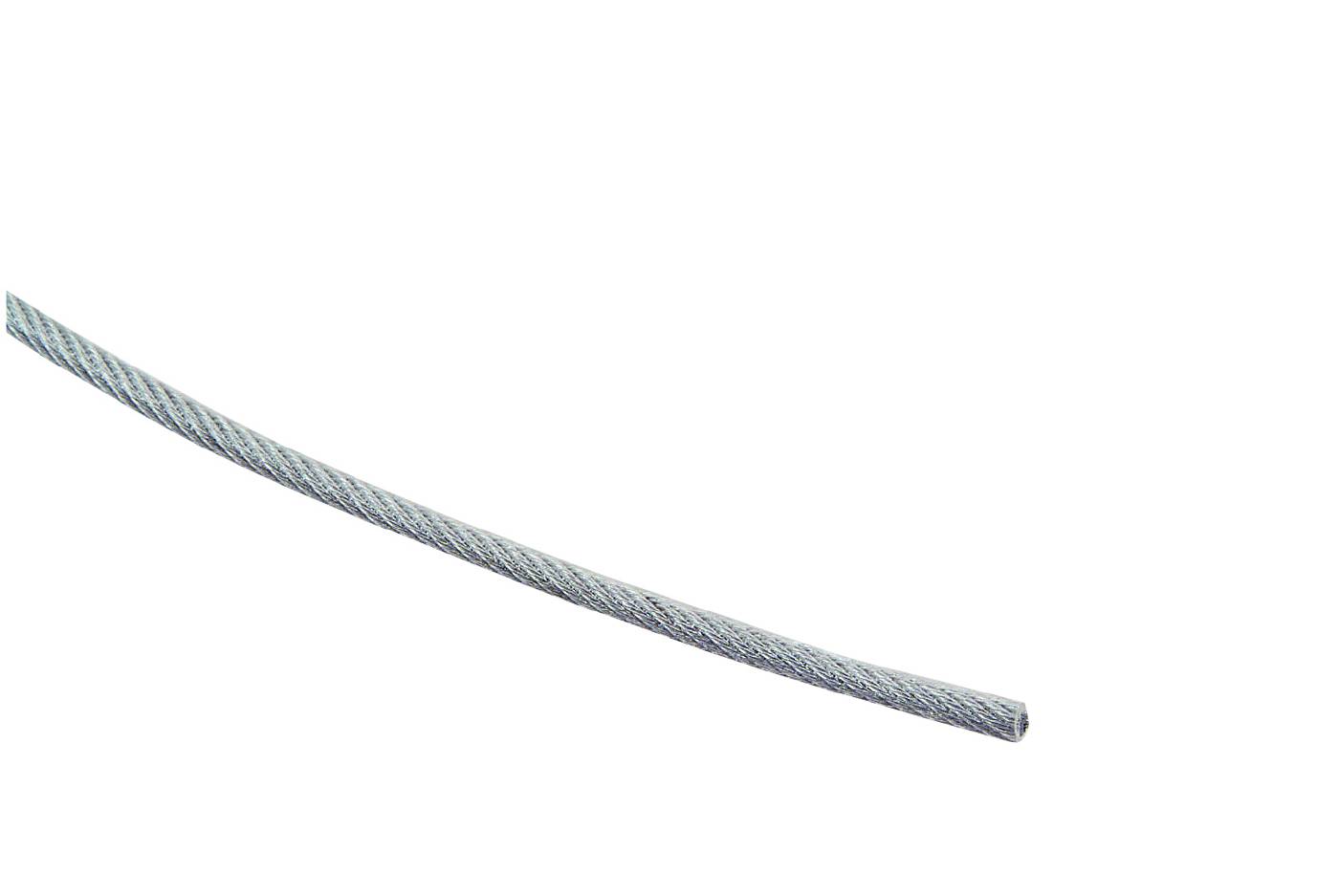 Galvanized steel wire coated with transparent PVC. Not intended for lifting.