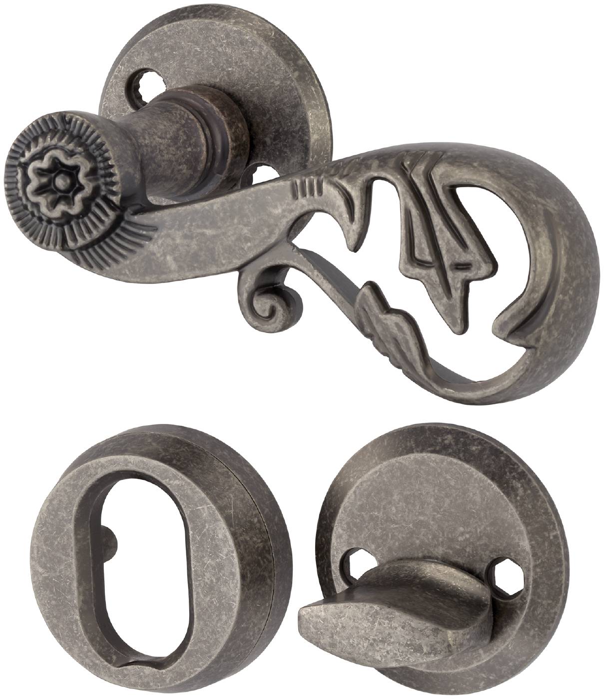 Dörrhandtag för ytterdörr utan returfjäder. Inklusive cylinderbehör, roddarpinne och genomgående skruv M5.